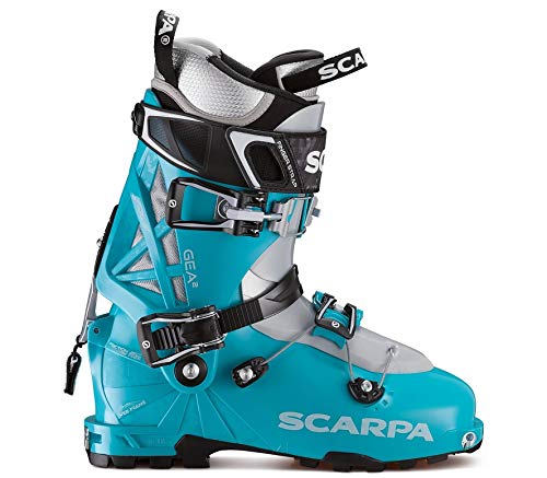 Der leichte Tourenskischuh Gea von Scarpa überzeugt mit Drei-Schnallen-Konstruktion und bequemer Passform. – Wave-Closure-Verschlusssystem – Thor-Magnesium-Schnallen – Belüftungssystem mit OutDry-Membran – geringes Gewicht – Gewicht bei Gr. 25: ca. 1250g